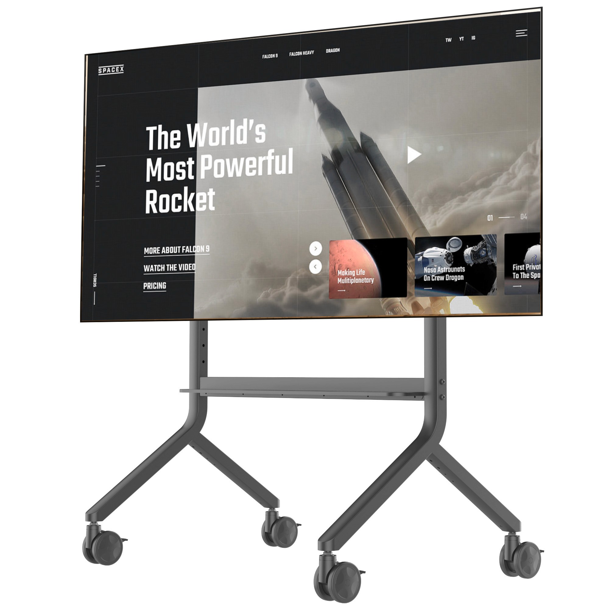 NB Ergonomic Model AVA1500-60-1P, a professional, height-adjustable mobile TV cart. Product Specifications and Compatibility